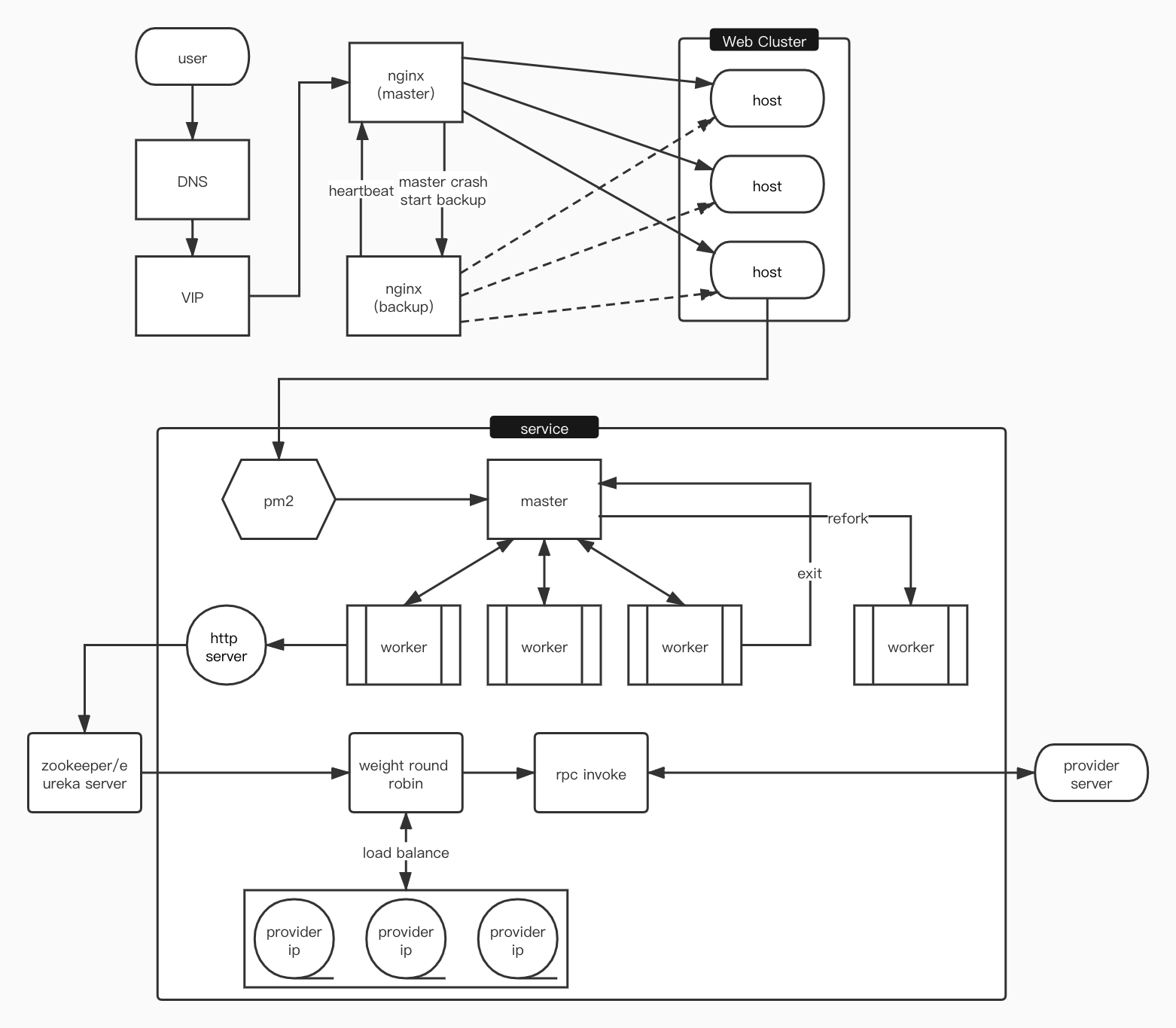 - DNS、VIP、Nginx服务的负载均衡底层服务(云)或者运维已经搭建好了,不需node开发过多关心