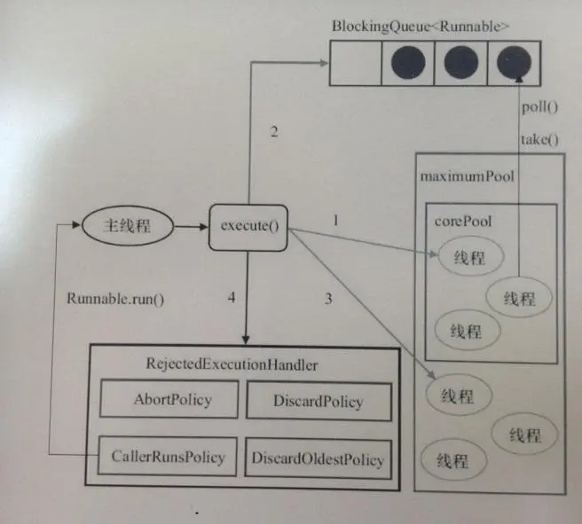 ThreadPoolExecutor.AbortPolicy:丢弃任务并抛出RejectedExecutionException异常。