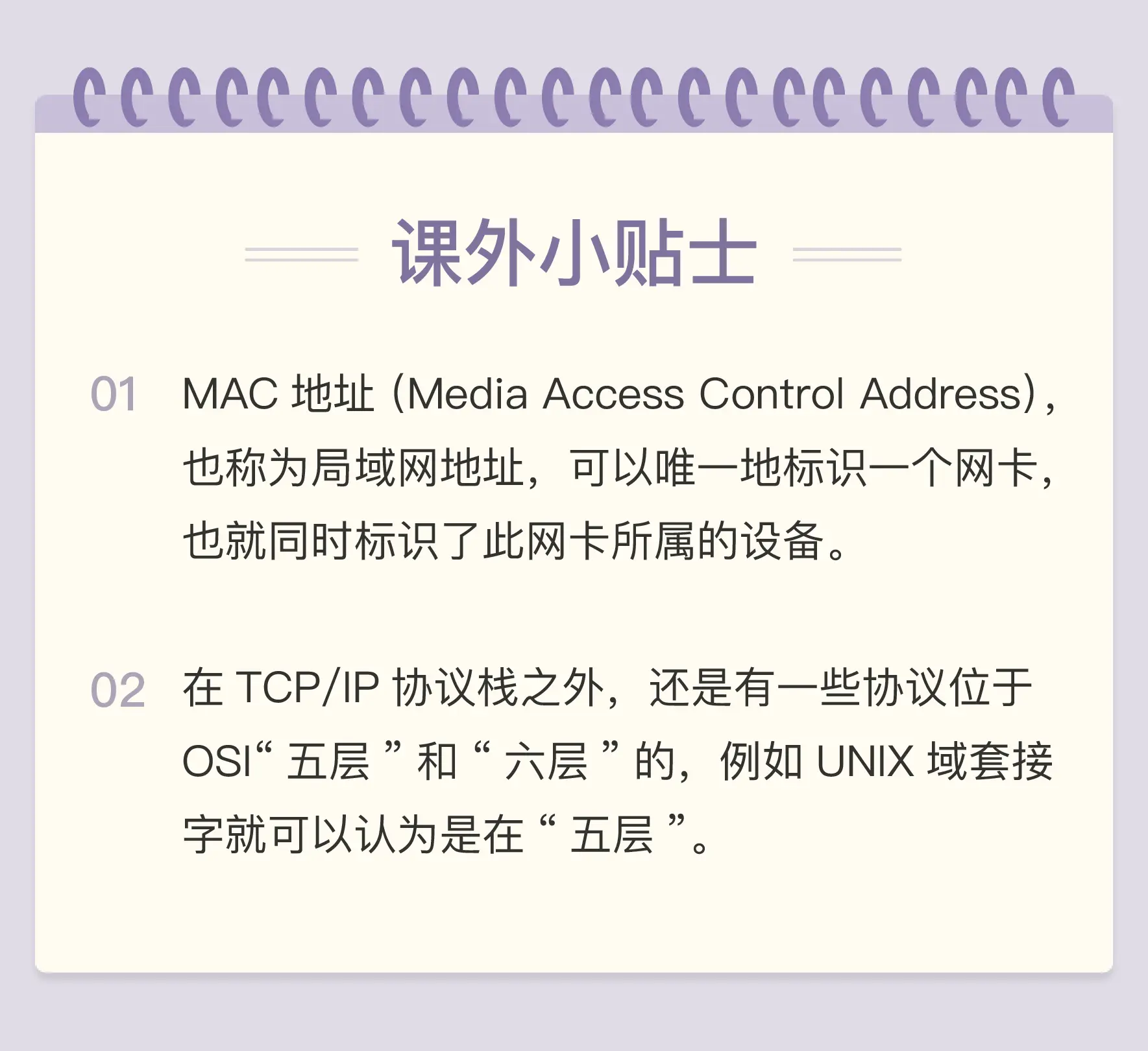 1. **链接层(link layer)**:负责在以太网、WiFi 这样的底层网络上发送原始数据包,工作在网卡这个层次,使用 MAC 地址来标记网络上的设备,所以有时候也叫 MAC 层。