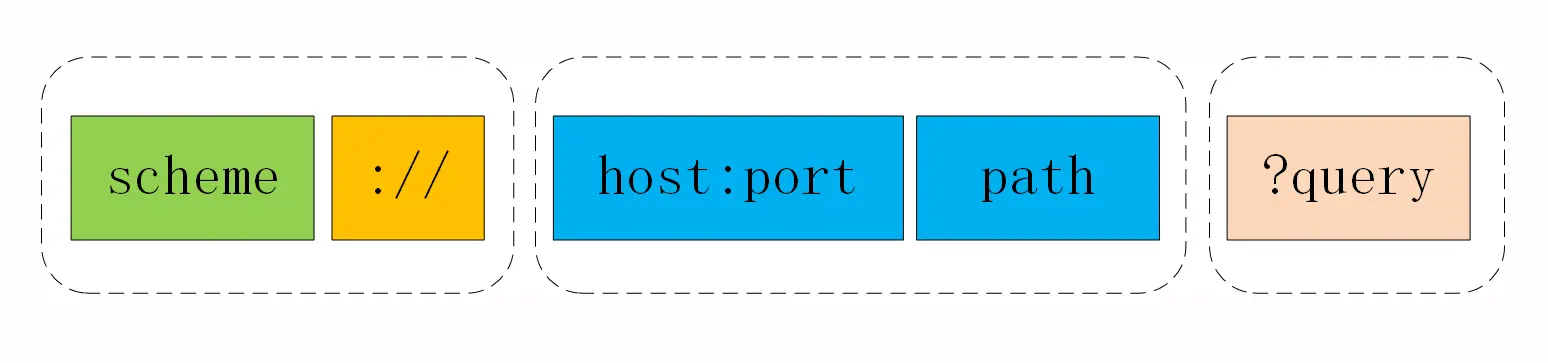 URI 本质上是一个字符串,这个字符串的作用是唯一地标记资源的位置或者名字。URI 最常用的形式,由 scheme、host:port、path 和 query 四个部分组成,但有的部分可以视情况省略。