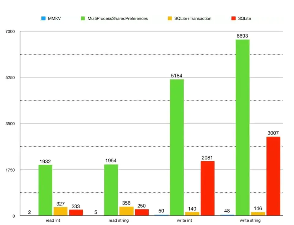 可见,MMKV 无论是在写入性能还是在读取性能,都远远超越 MultiProcessSharedPreferences & SQLite & SQLite, MMKV 在 Android 多进程 key-value 存储组件上是不二之选。