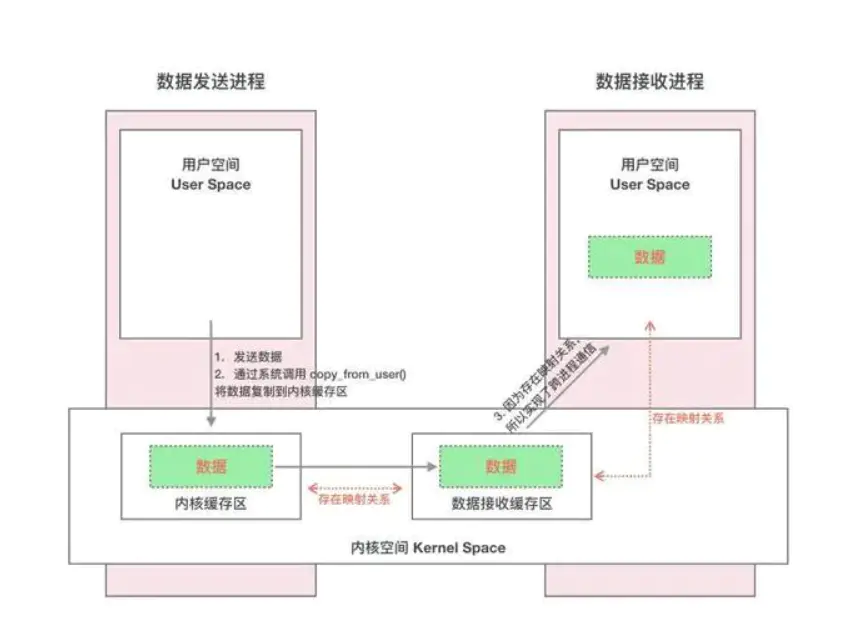 这样一来,数据只需要从A进程的用户空间,直接拷贝到B所对应的内核空间,而B多对应的内核空间在B进程的用户空间也有相应的映射,这样就无需从内核拷贝到用户空间了。
