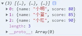{name:'小明',score:80},{name:'小红',score:90},{name:'小蓝',score:85}