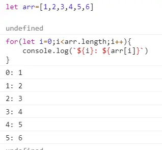 console.log(`${i}: ${arr[i]}`)