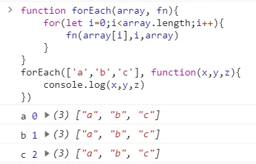 forEach(['a','b','c'], function(x,y){