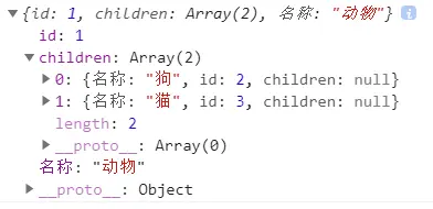 {id:2 , 名称:'狗', children:null},