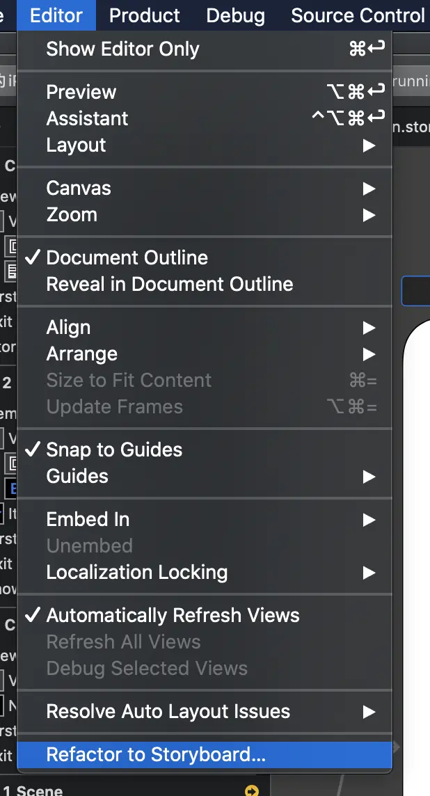 菜单栏--Editor--Refactor to Storyboard: