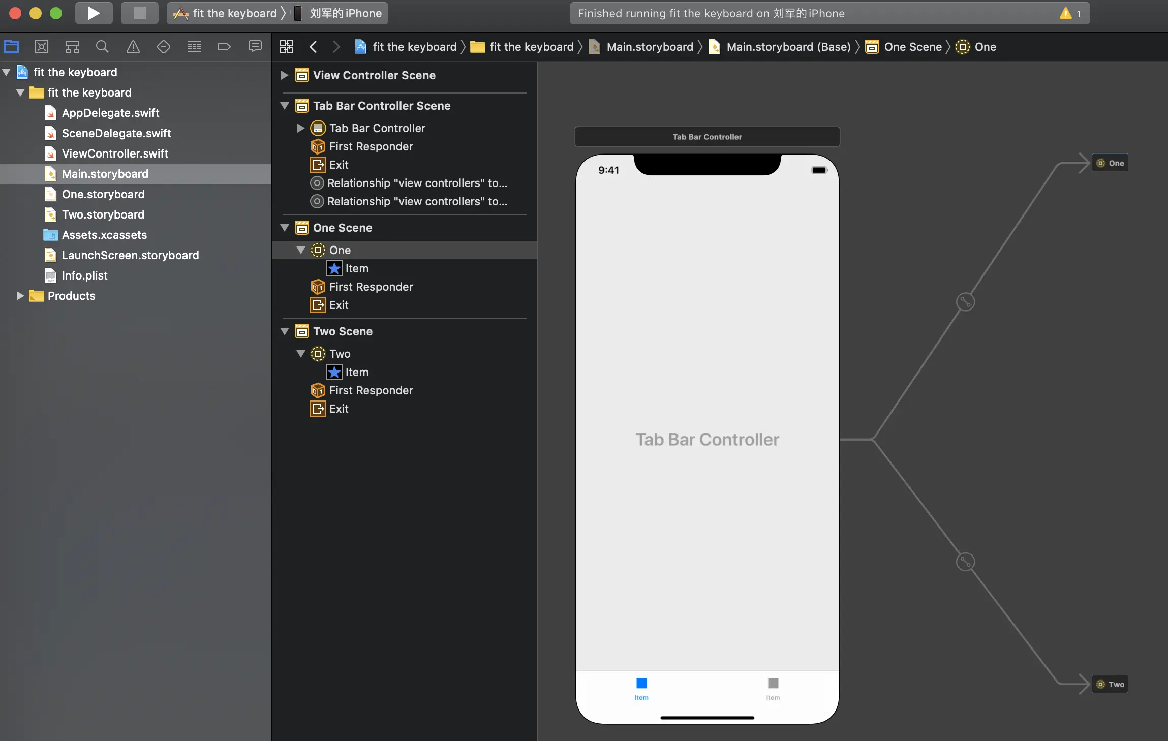 main.storyboard的TabBarController后面连接的东西即为Storyboard Reference: