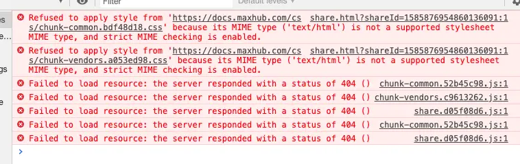 1. 在发第二个版本之后,打开生产环境的文件预览链接,页面出现白屏,浏览器控制台报了两个错误