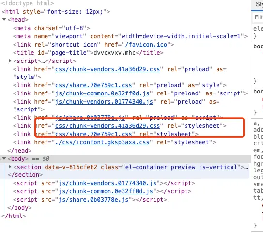 针对第1个现象(在发第二个版本之后,打开生产环境的文件预览链接,页面出现白屏,包了两个错误);先看html的差异