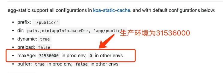 最后,贴一下egg-static 在不同环境下默认设置的 maxAge 值