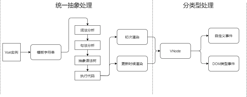 VNode所指向的节点有两大类:DOM型和组件型,而Vue框架在这之前对两种类型的事件的处理是一致的,也就是进行抽象化处理,但是在这里就产生了分叉。