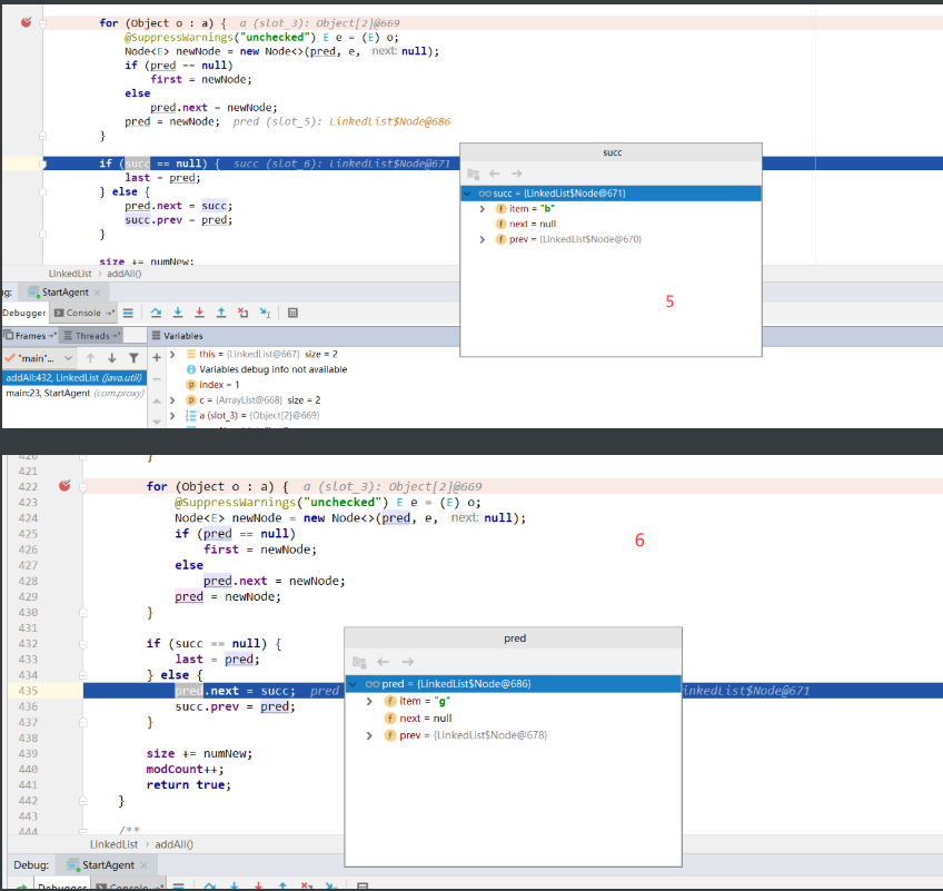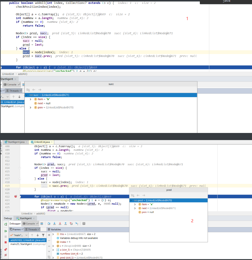 //定义二个节点 pred:添加节点的前一个节点 succ:添加节点的位置