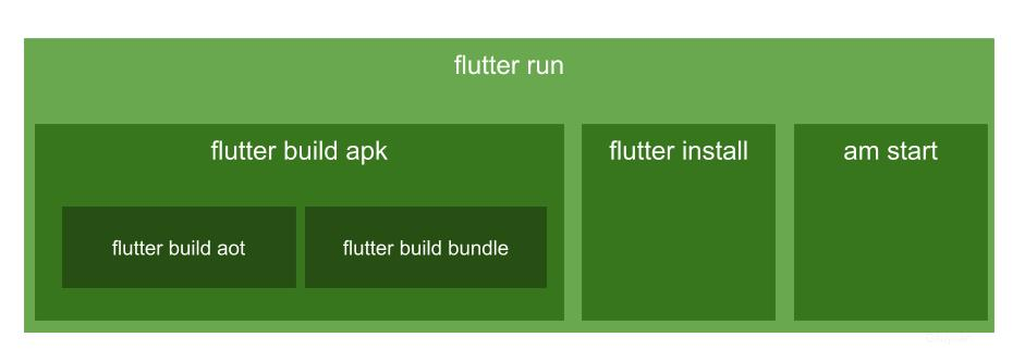 flutter run过程涉及多个flutter相关命令,其包含关系如下所示: