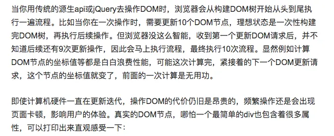 优点:最终表现在DOM上的修改只是部分的变更,可以保证高效的渲染,提高网页性能