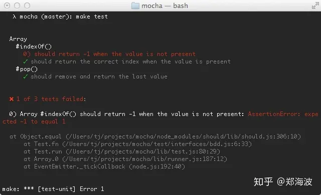 可以发现测试用例变得更加易读易写了,而且当断言失败,也会自动根据链式调用产生的状态,自动拼装出更友好的错误信息,特别是当与 mocha 等测试框架结合时,可以直接生成直观的测试报告: