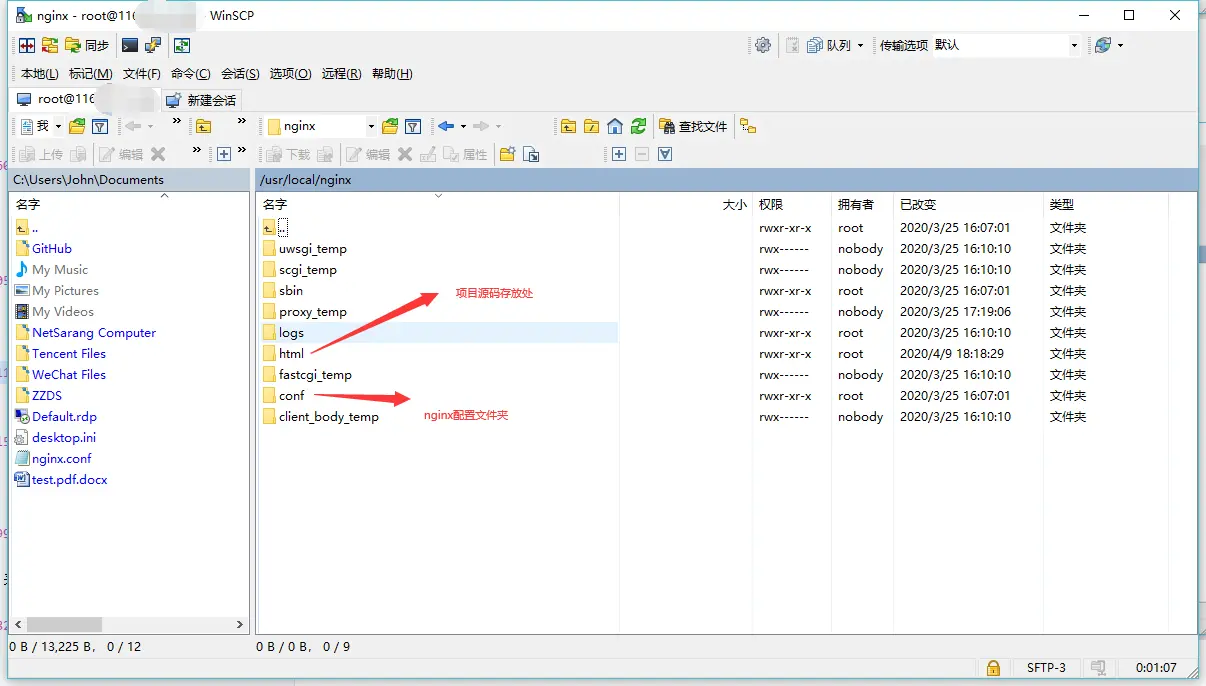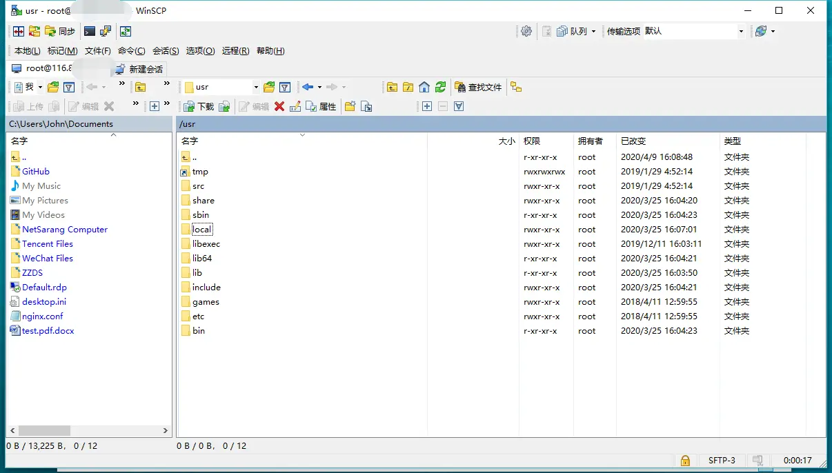 4.2.1 登录 winSCP(文章2.2.2有介绍)