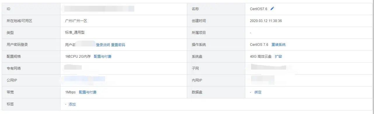 服务器可以选择阿里云、腾讯云等服务商购买,根据自己的需要购买合适配置的服务器即可,本人仅仅用于自己测试用,购买配置如下: