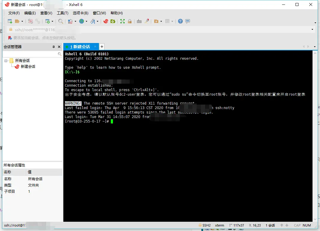 3.1 使用root用户登录Xshell(在文章2.1有介绍怎么使用)