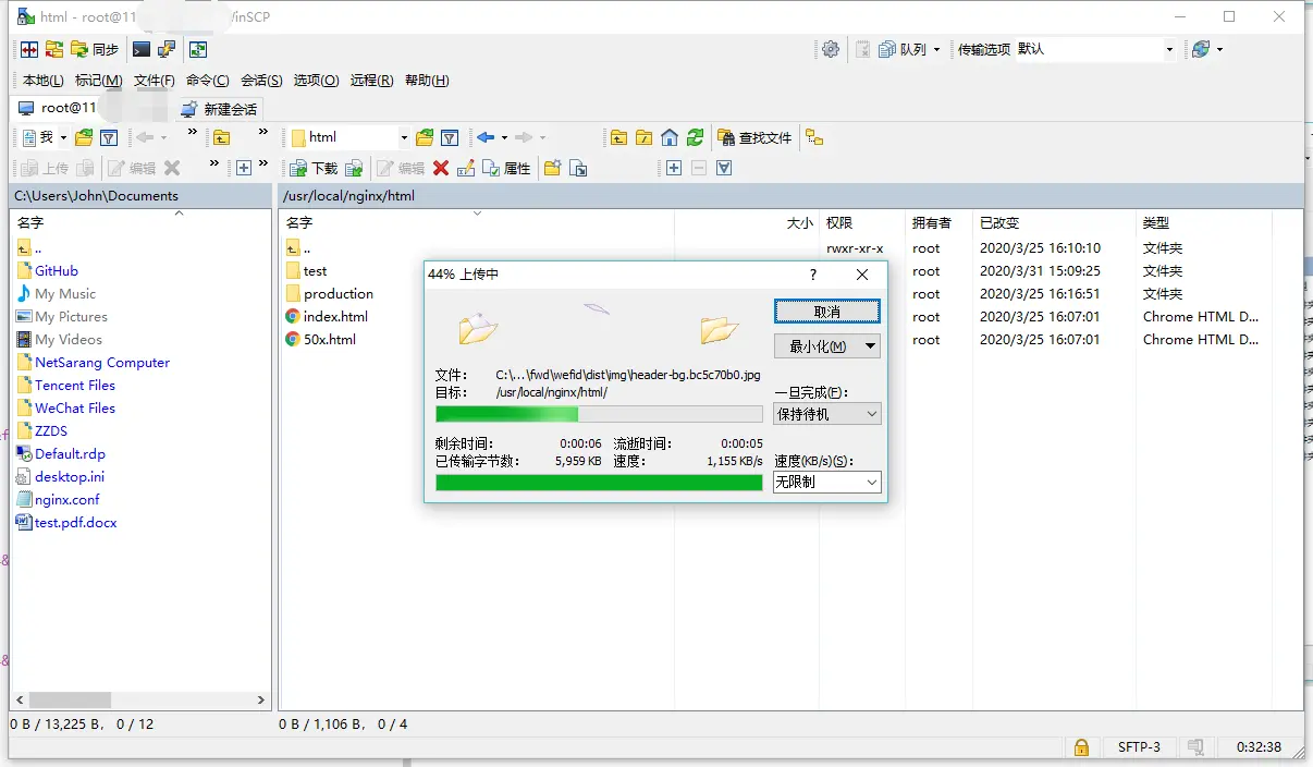 window连接操作远程服务器主要使用到两个软件,Xshell和WinSCP。xshell主要来连接服务器终端,主要用来编辑linux命令来操作服务器,对于我这样linux小白来说使用linux命令来操作文件实属不易,这个时候就需要用到winSCP这个软件了,它能帮助我们能像操作window的文件一样来操作服务器上的文件,必须提到的是运用WinSCP可以直接拖拽本地文件到WinSCP实现本地文件上传服务器。