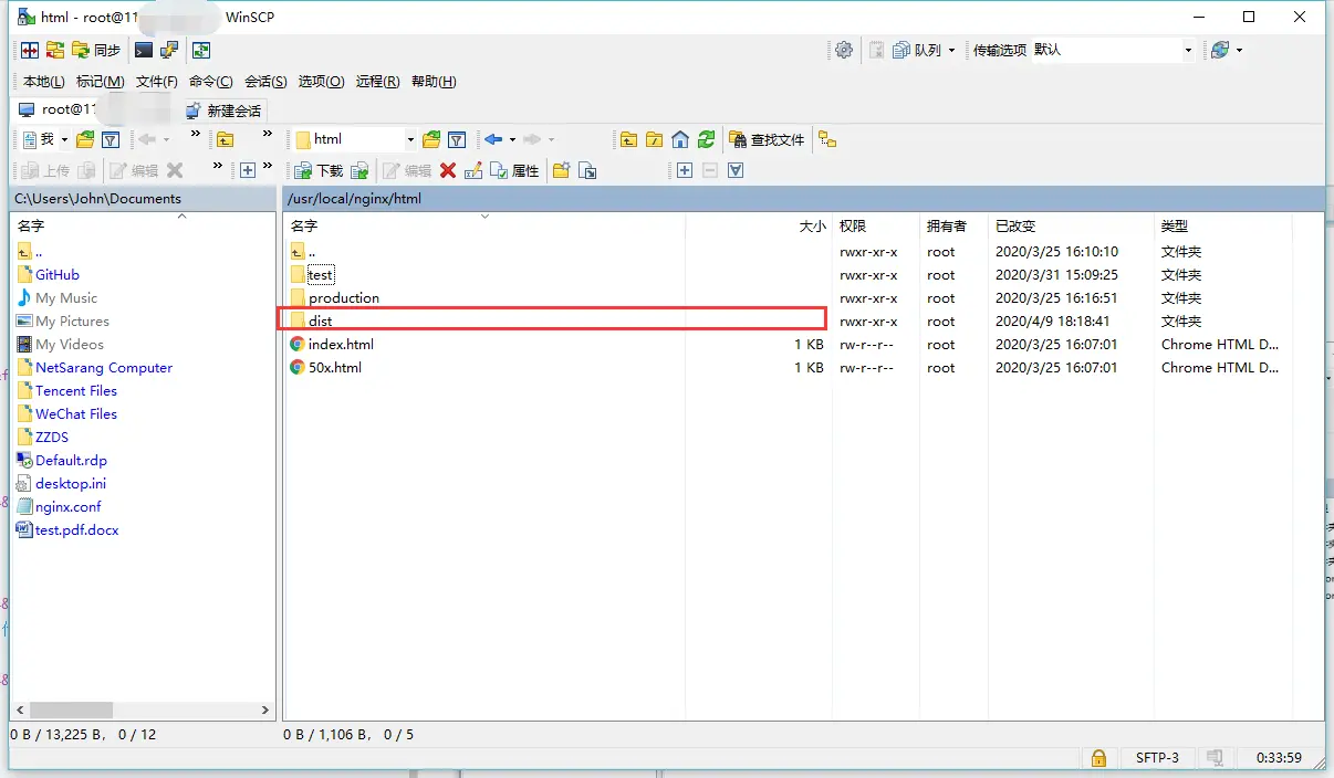 4.2.3 进入到html目录(上图标识),将Vue源码目录dist拖拽到html目录里上传