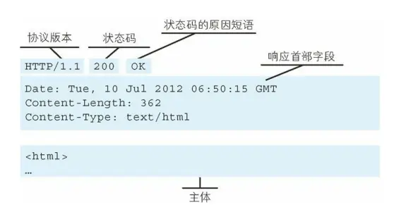 由状态行(状态码,状态码标识语,协议版本),首部字段和内容实体构成。