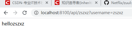 访问 http://localhost:8100/api/zszxz?username=zszxz 网关路由测试