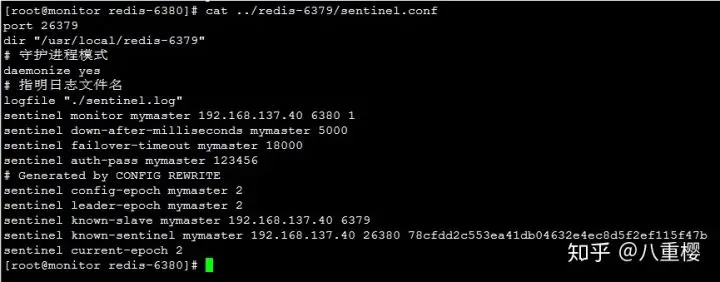 slaveof 192.168.137.40 63792.启动群集之后,群集程序默认会在主从的sentinel.conf文件中加入群集信息