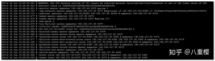 sentinel monitor mymaster 192.168.137.40 6379 1