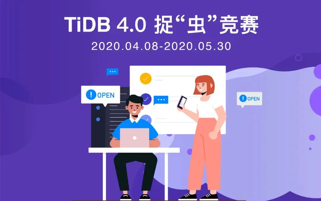 TiDB 4.0 捉“虫”竞赛来袭,本次竞赛将持续到 5 月 30 日,邀请社区小伙伴参与一起为 TiDB 全球社区建设添砖加瓦,让 TiDB 新版本给大家带来更好的体验!我们将按大家发现的 bug 等级或提交的体验报告给予相应积分,积分可以兑换 TiDB 限量周边、PingCAP University 培训机会等多项奖品。
