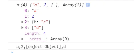 说明:如果参数中有数组,这将数组拆分合并,而不是直接合并数组本身,但是不递归扁平化数组的数组。