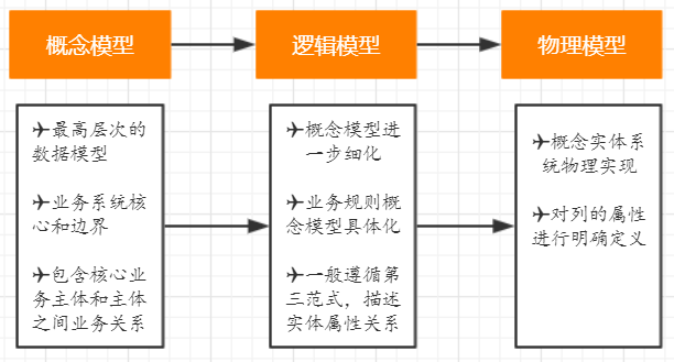 业务调研,业务侧对齐,遵循关系型数据库建模方式,从概念模型(cdm)->逻辑模型(ldm)->物理模型(pdm)建模套路,是一个从抽象到具体的一个不断细化完善的分析,设计和开发的过程。