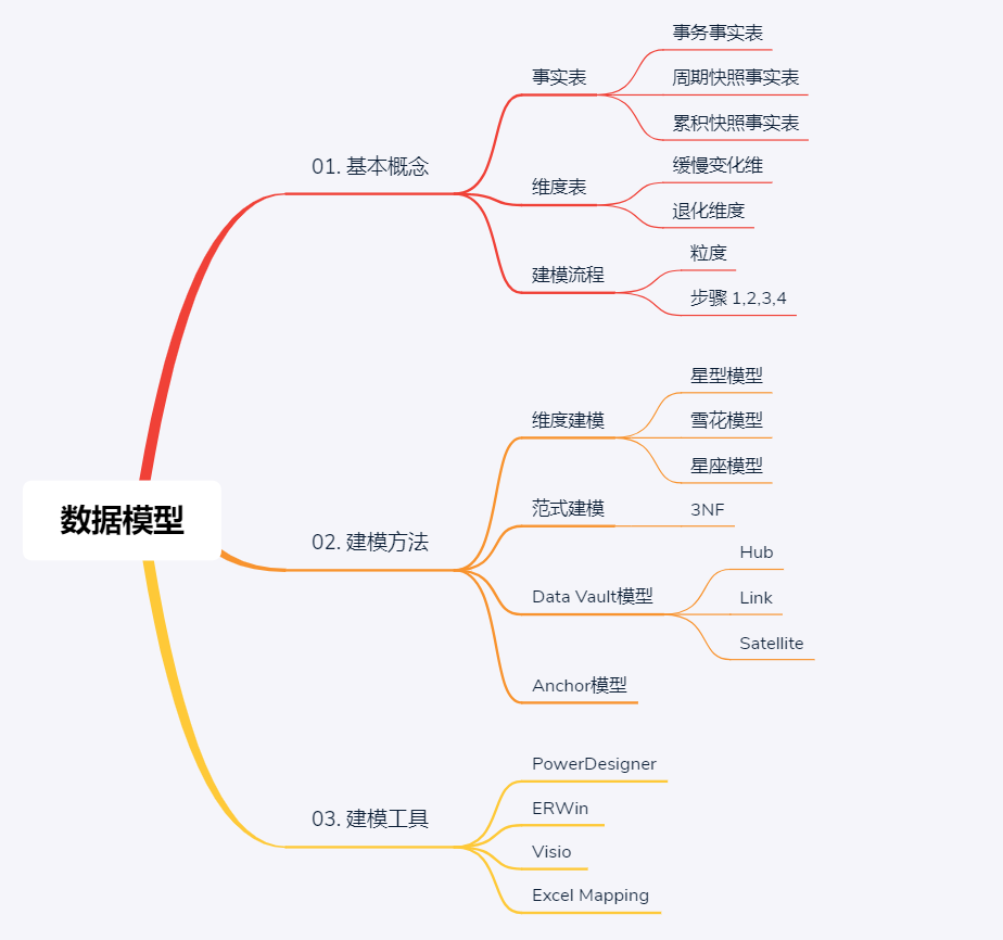 数据仓库建模方法论可分为:维度建模、范式建模、Data Vault模型、Anchor模型。