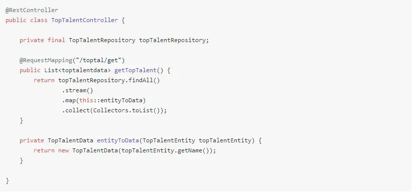通常,打破关注点分离的是将新功能简单地 “倒” 在现有类中。当然,这是一个很好的短期解决方案(对于初学者来说,它需要更少的输入),但它也不可避免地会在将来成为一个问题,无论是在测试期间、维护期间还是介于两者之间。考虑下下面的控制器,它将从数据库返回TopTalentData。