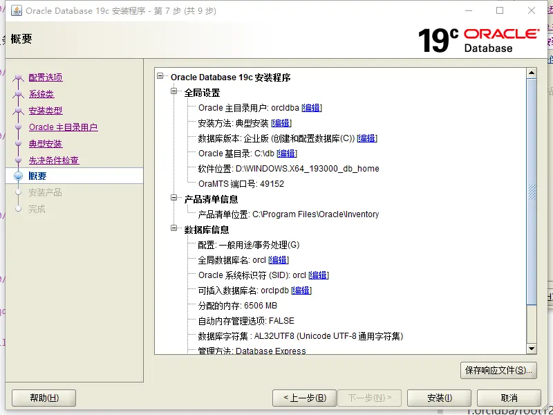 - 下载oracle 19c安装包 ,WINDOWS.X64_193000_db_home.zip,解压文件