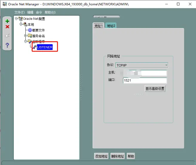3.配置监听程序,配置服务器ip和监听端口,一般用默认端口1521