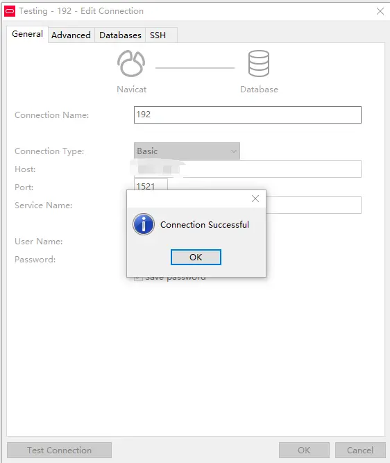 4.打开navicat for oracle,用system用户登录,server name 为ORCL