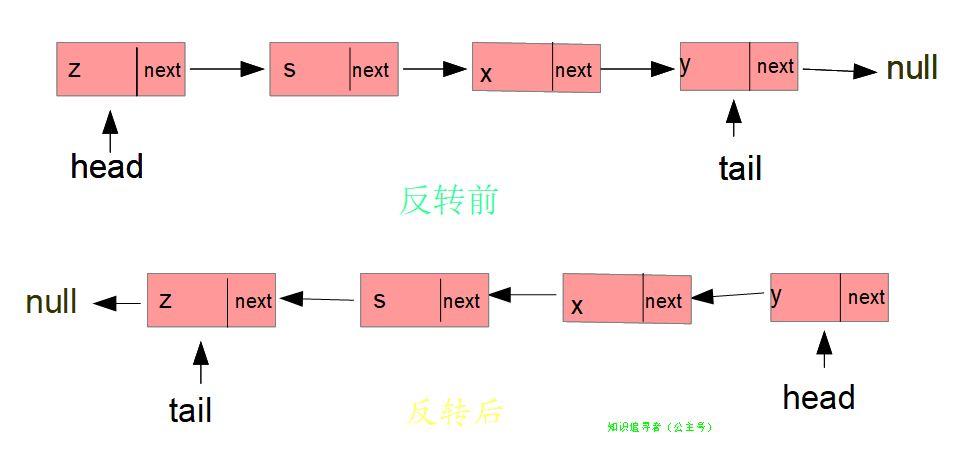 // 重置下一个节点(要反转的节点指向已经反转的节点,第一次为null)