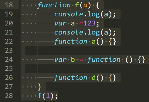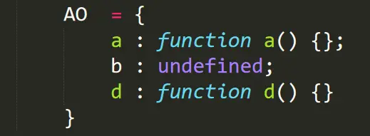 4.在函数体里面找函数声明,值赋予函数体:由于在函数中有 function a() {} ,这一函数因此此时AO中 a = function a() {}