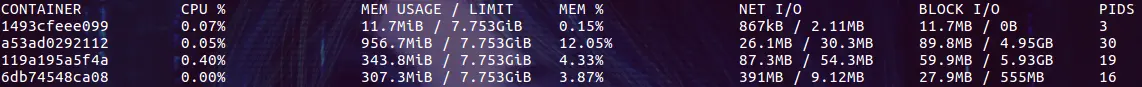 有了这些信息我们就可以完全按照自己的需求或者是偏好来控制 docker stats 命令输出的内容了。
