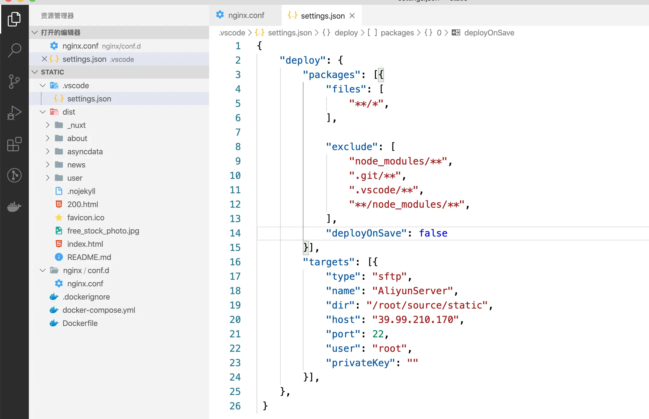 第五步:在source目录上查看是否有static文件,并查看文件中是否添加了本地文件到服务器上