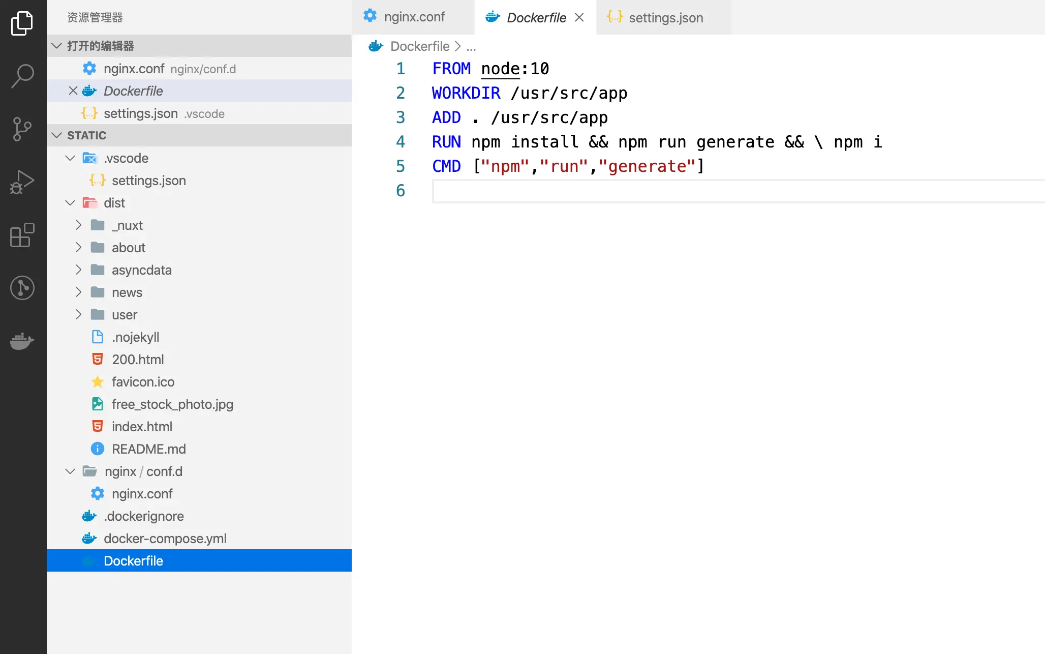 项目地址:gitee.com/gengyanan/d… 第一步:使用 npm run generate,进行对nuxt项目打包,生成dist文件