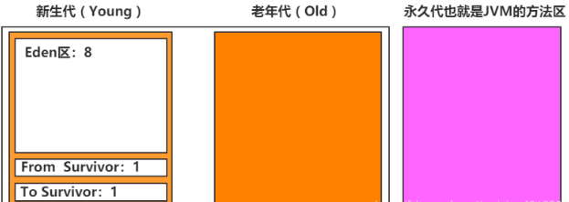 -XX:SurvivorRatio=n 年轻代中 Eden 区与两个 Survivor 区的比值。注意 Survivor 区有两个。8表示两个Survivor :eden=2:8 ,即一个Survivor占年轻代的1/10,默认就为8