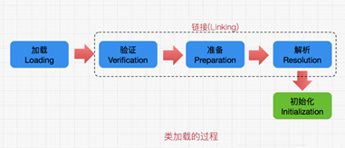 - 程序主动使用某个类时,如果该类还未被加载到内存中,则JVM会通过加载、连接、初始化3个步骤来对该类进行初始化。如果没有意外,JVM将会连续完成3个步骤,所以有时也把这个3个步骤统称为类加载或类初始化。