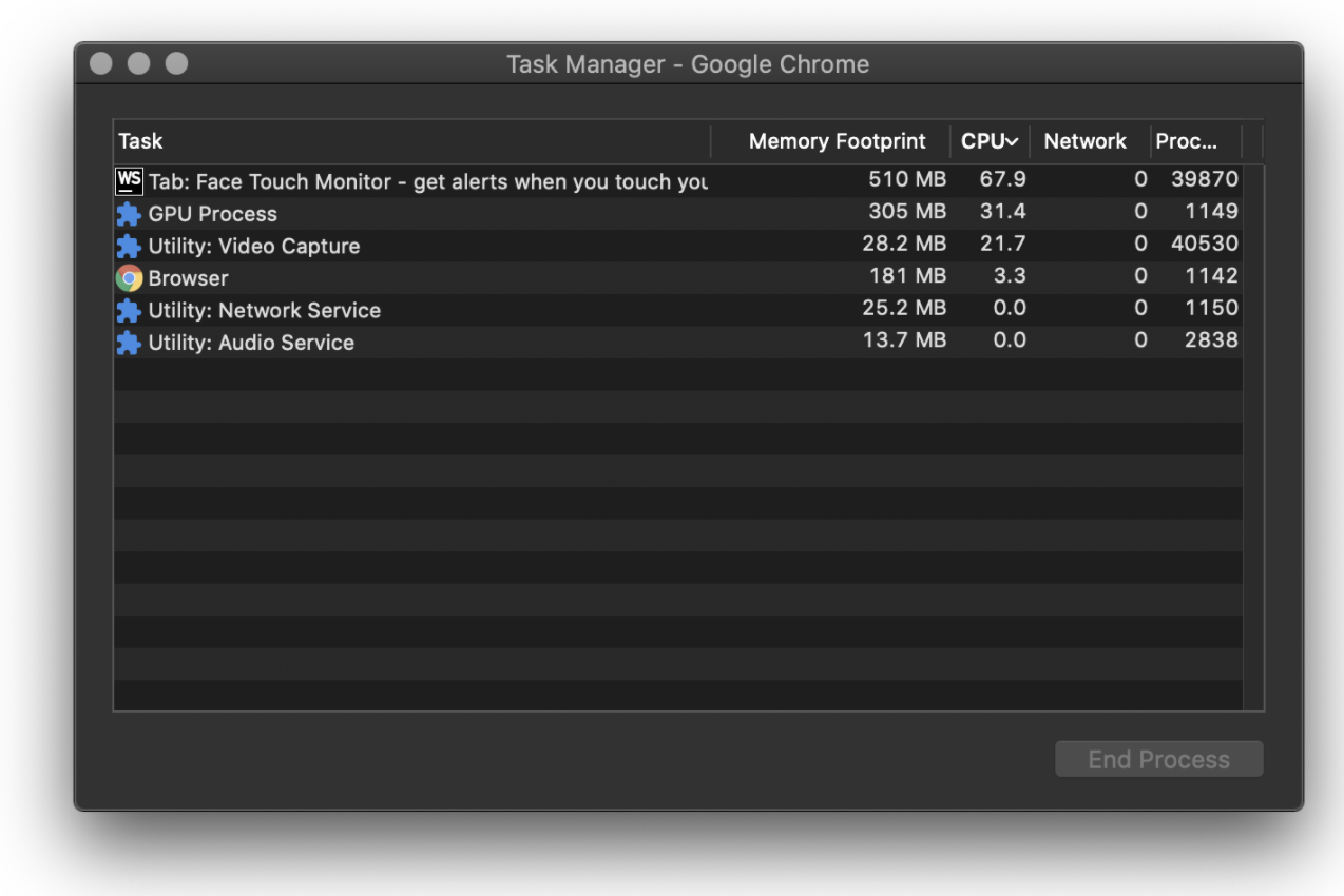 BodyPix的CPU占用率很高。我在MacBook上安装了2.9 GHz 6核的Intel Core i9,所以对我来说这不是什么大问题,但该问题在速度较慢的计算机上更为明显。TensorFlow.js也会尽可能利用GPU,因此如果你没有合适的GPU,它会变慢。这在每秒帧数(FPS)速率中体现的很明显。
