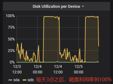 设置后,经过一天验证,查看监控,发现磁盘利用率恢复正常。不再定时出现100%利用率的情况。
