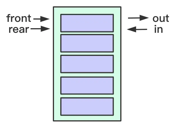 与栈结构不同的是,队列要求数据先进先出,即一端进,另一端出。