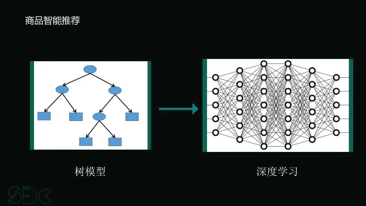 由于商品数量巨大,需要更复杂的机器学习模型解决推荐问题——深度学习。淘宝、京东都是上千万种商品,企业需要非常细力度得建模用户兴趣以及捕捉如何匹配用户和商品。
