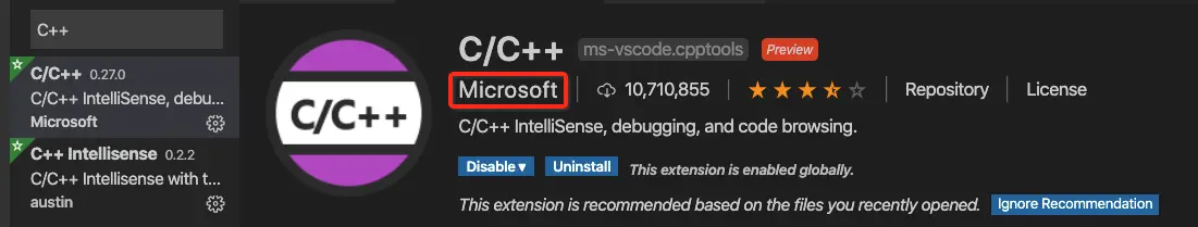 打开VS Code按快捷键 shift+command+X ,并搜索C++。