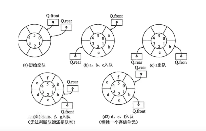 判断满对:Q.front = (Q.rear + 1) % MaxSize
